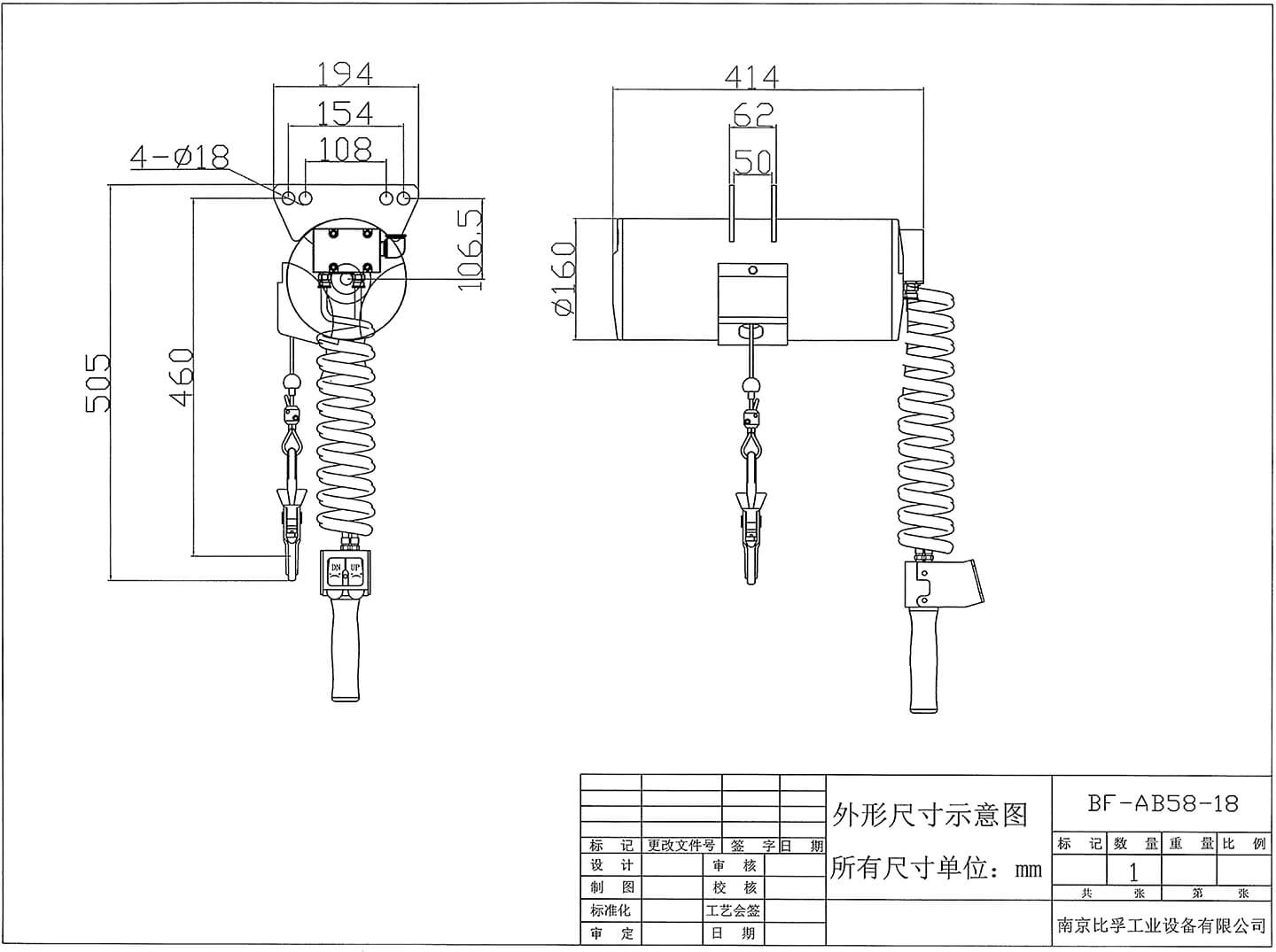 气动平衡吊标准额定工作气压是0.7Mpa(100psi)。