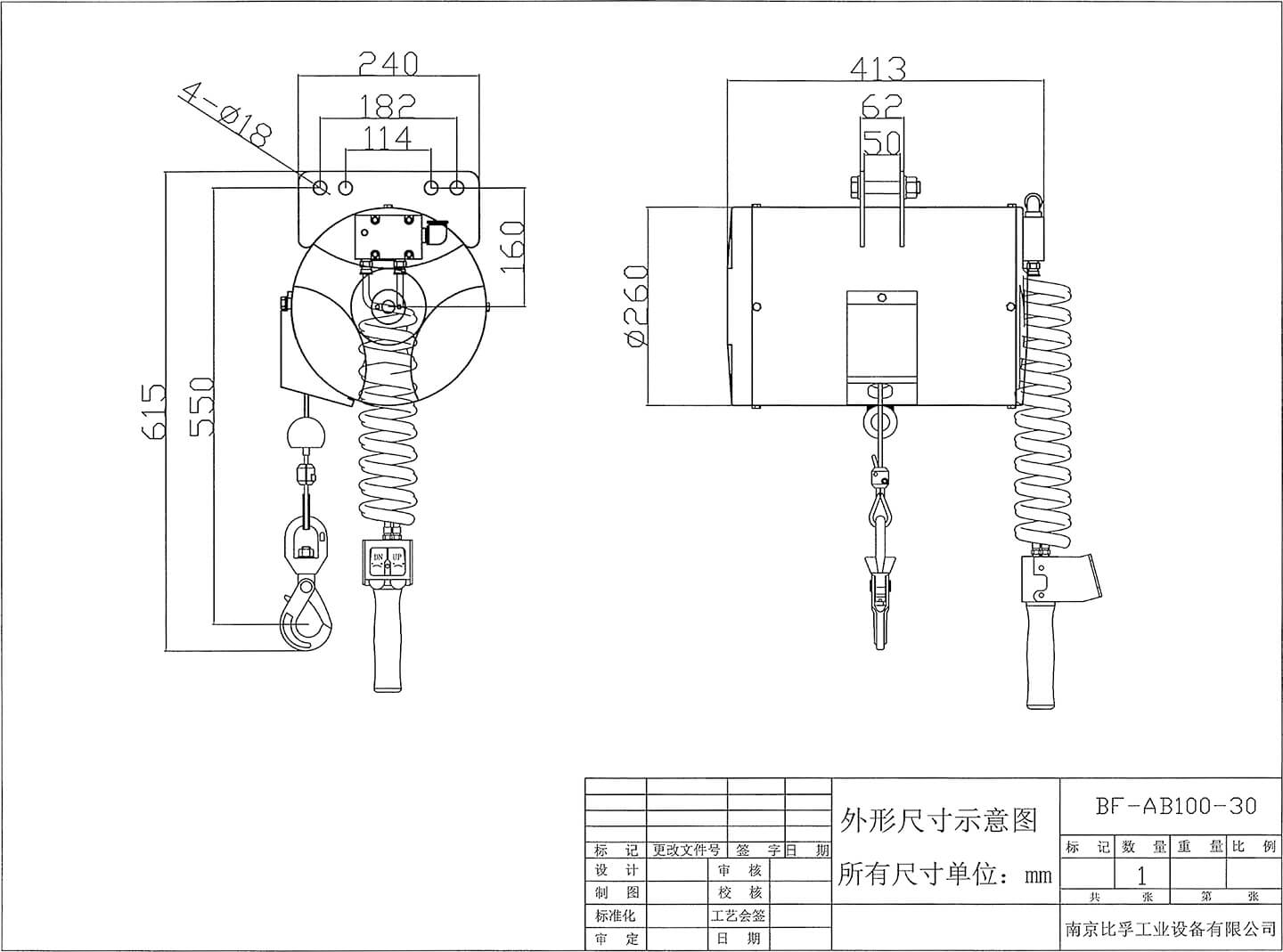 气动平衡吊型号:BF-AB100-30