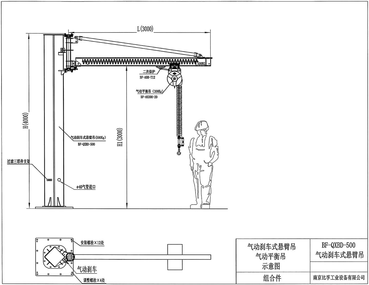 型号 | BF-QXBD-500 | 气动刹车式悬臂吊 |