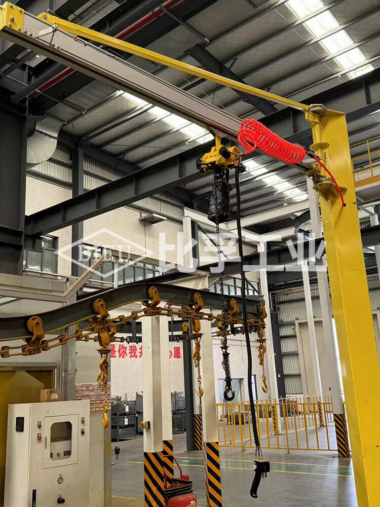 气动葫芦配自立式悬臂吊上下料应用案例。