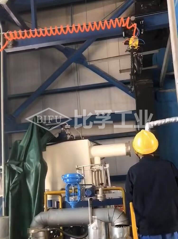 防爆气动葫芦配防爆气动行走小车上下料应用案例。
