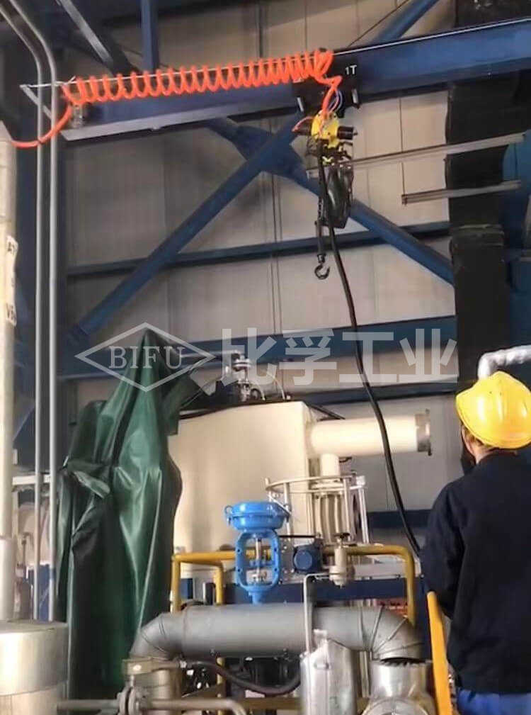 防爆气动葫芦配防爆气动行走小车上下料应用案例。