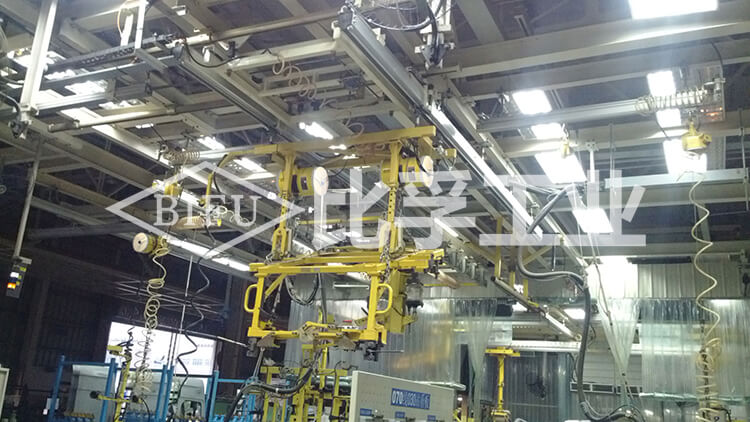 汽车主机厂装配线,多台气动平衡吊组合吊简单、快捷、高效。