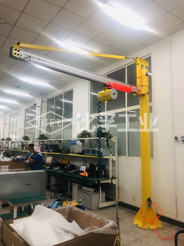 气动平衡吊配自立式悬臂吊应用案例。
