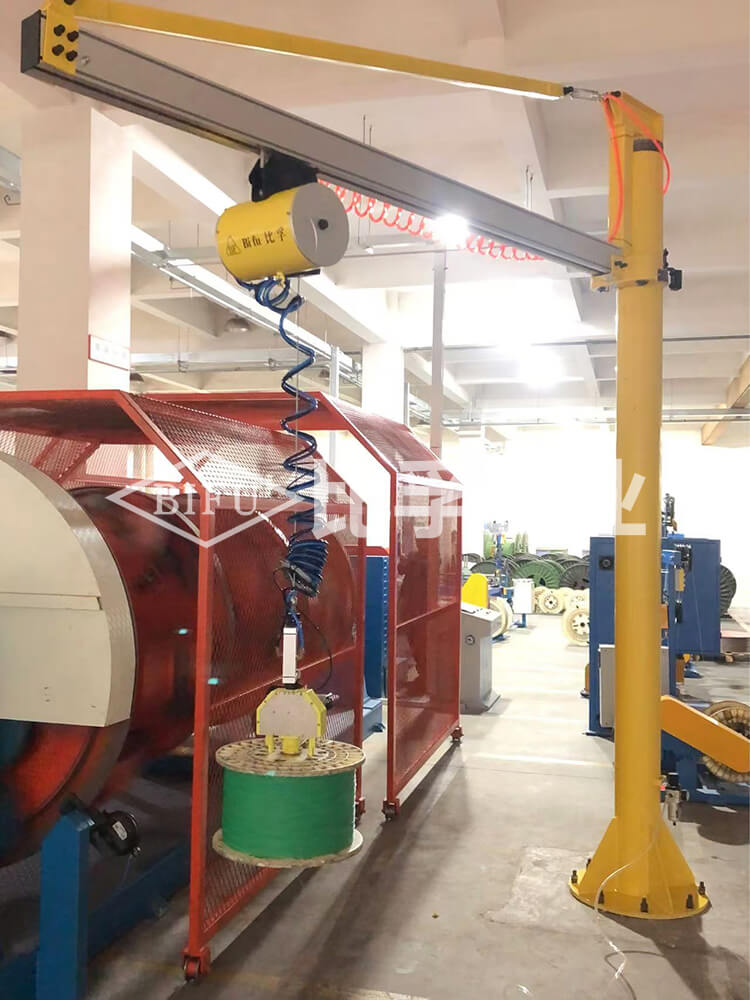 气动同轴控制款气动平衡吊配气动夹具配自立式悬臂吊上下料应用案例。