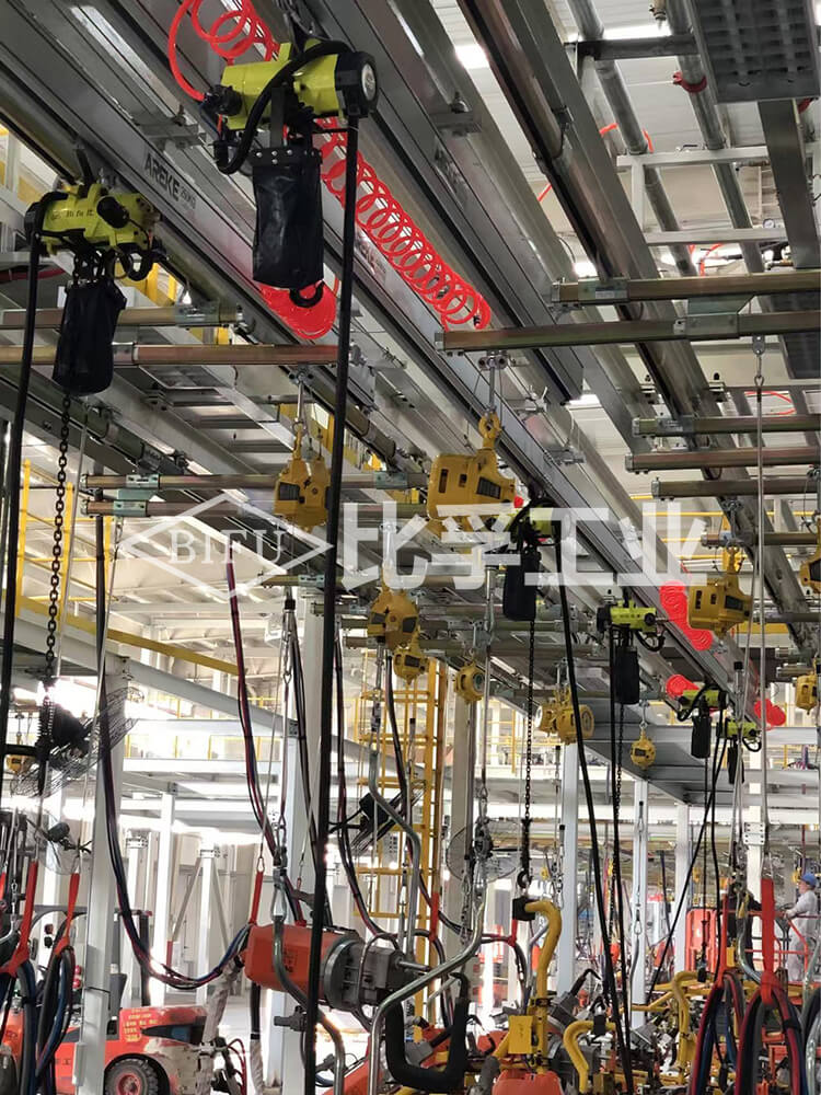汽车主机厂气动葫芦配铝合金轨道应用案例。